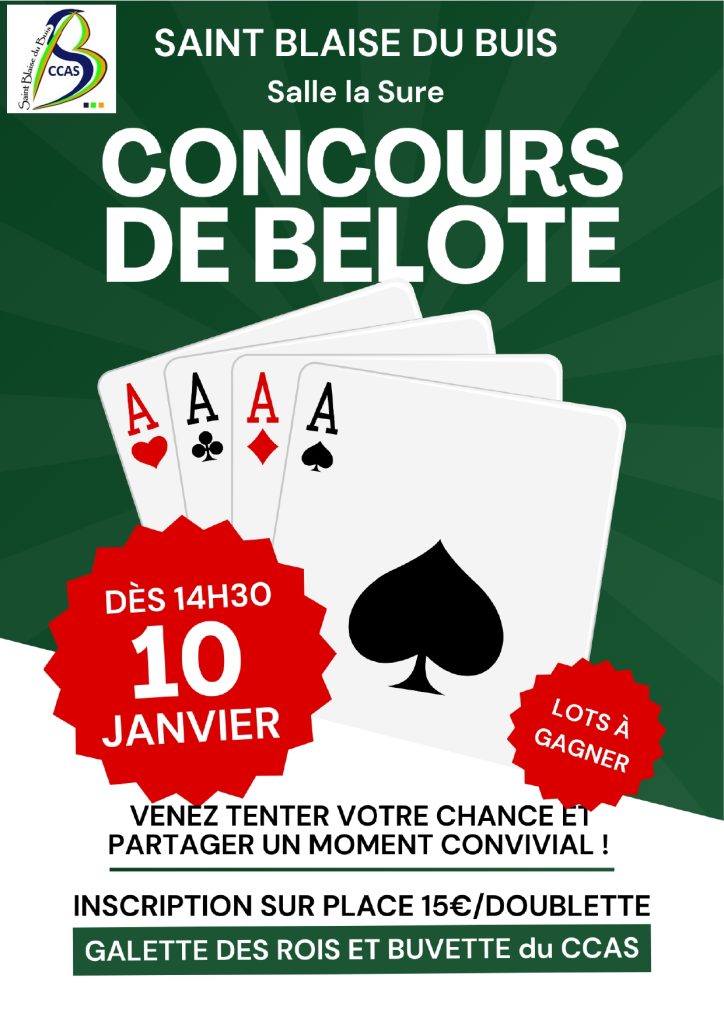 Venez tenter votre chance et partager un moment convivial au concours de Belote organisé par…