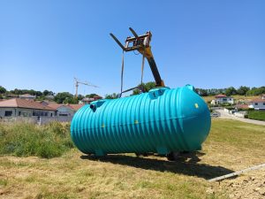 L’installation d’une citerne de grande capacité de 25000 litres sur le terrain communal dit de la Source permet de créer une retenue et un stockage d’eau enterrés. Cette réserve d’eau permet un partage pour les administrés, les agriculteurs et les services d’incendie et de secours. Pour mémoire, l’eau provient d’un captage d’une source communale situé dans le coteau que la municipalité a acquis en 2022. L’accès à l’eau est historique, ouvert à toute la population. Il convient de la garantir, notamment en période de sècheresse. Cet investissement est la première étape d’un aménagement plus global de la partie sud de ce terrain qui accueillera prochainement des Points d’Apport Volontaire et fera l’objet d’une végétalisation à deux étages, arbustes et arbres, pour favoriser un puits de fraicheur et préserver la biodiversité autour de ce point d’eau.